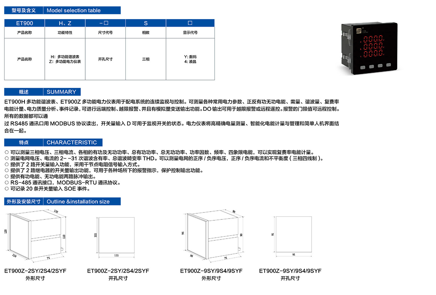 ET900H/900Z系列多功能谐波表,网络多功能电力仪表