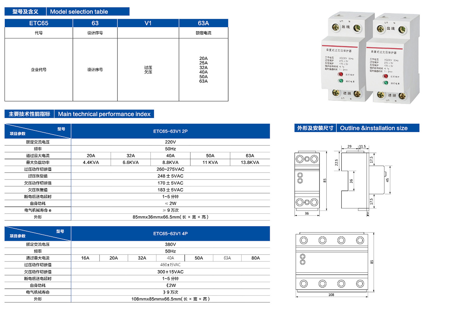 ETC65-63V1自复式过欠压保护